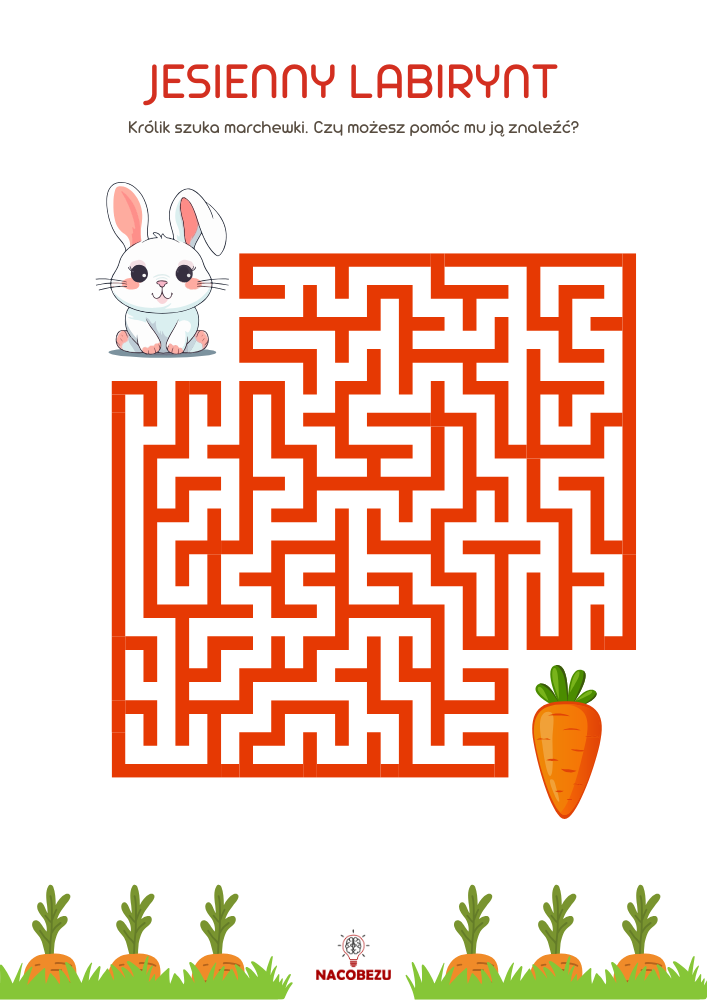 Wszystkie jesienne karty pracy są dostępne w formacie PDF – idealne do wykorzystania w domu, przedszkolu, szkole czy na jesiennych zajęciach plastycznych. Wystarczy pobrać, wydrukować i pozwolić dziecku odkryć niezwykłą zabawę w jesiennym labiryncie!