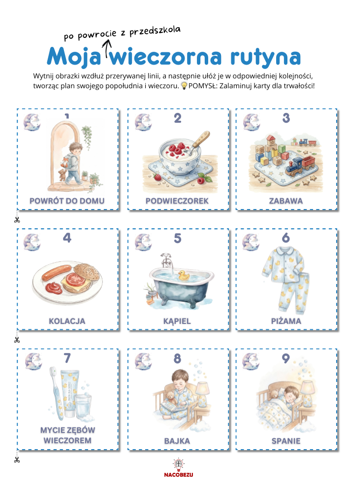 Karty rutyny dnia dla dzieci - Zanim wybije godzina spania...