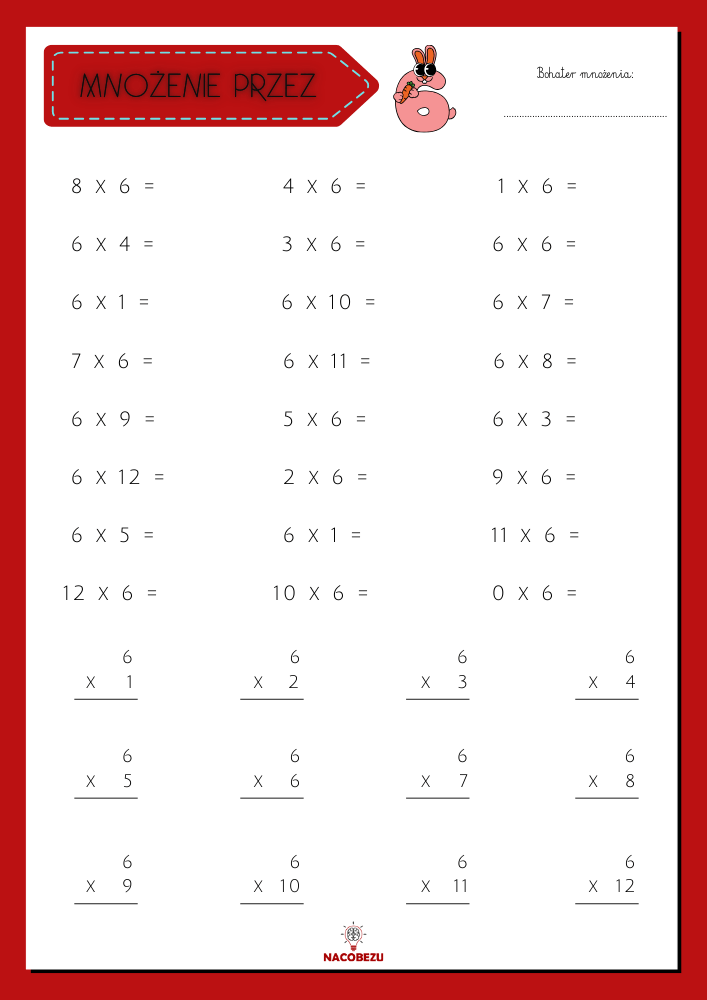 Tabliczka mnożenia do druku wspiera naukę podstaw matematyki: uczniowie ćwiczą logiczne myślenie, rozwiązują zadania i widzą związki między liczbami w codziennych sytuacjach.