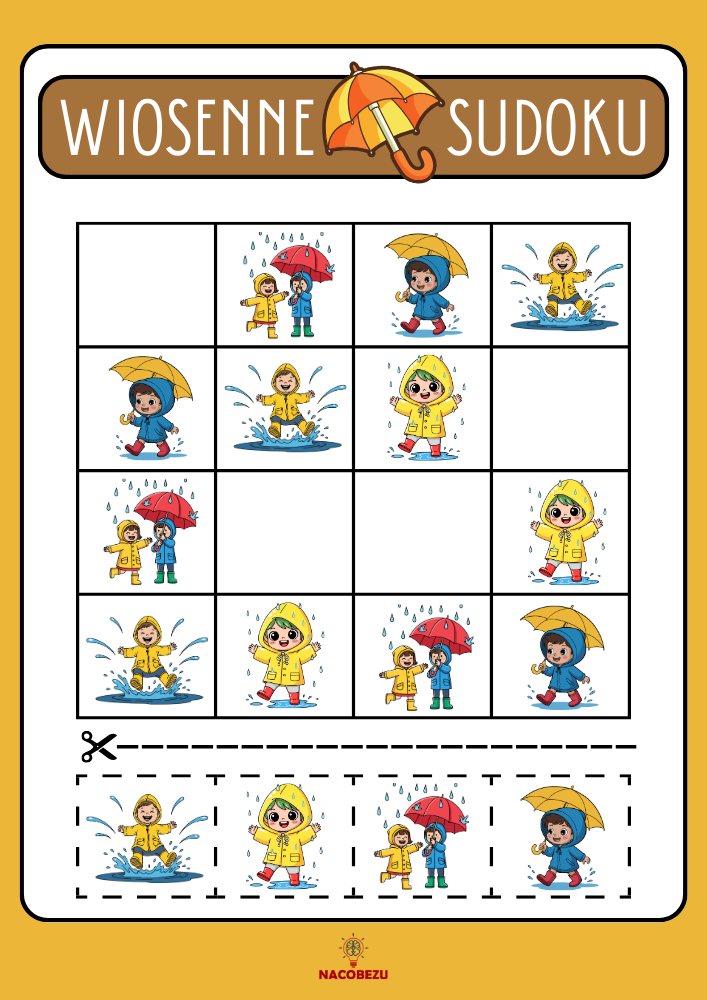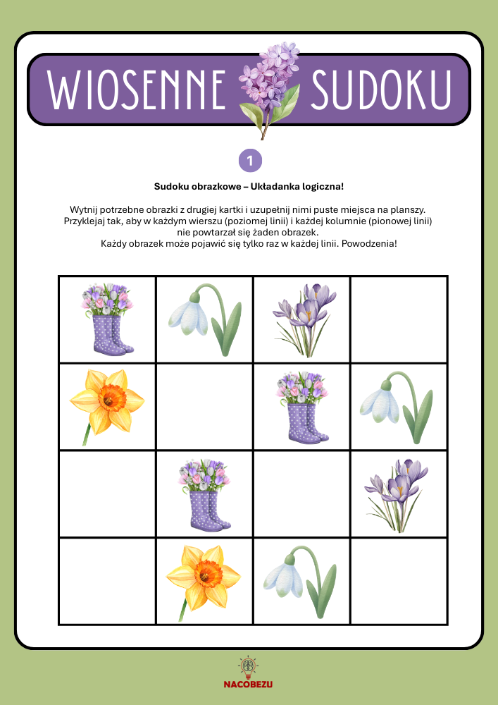 ✅ Logiczne myślenie – układanie wiosennych obrazków zgodnie z zasadą sudoku doskonale rozwija analizowanie układów i zależności.
