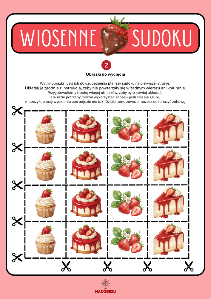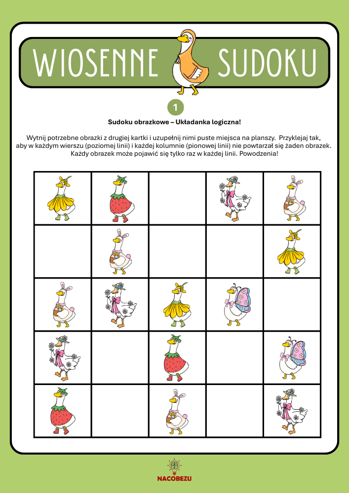 Szukasz inspirującej gry na rozwój logicznego myślenia i koncentracji? Wiosenne sudoku dla dzieci to świetna zabawa nie tylko dla małych detektywów! Na stronie znajdziesz gotowe karty pracy do druku, które możesz wykorzystać w domu, szkole lub przedszkolu – jako kreatywną rozrywkę, ćwiczenie skupienia lub logiczny przerywnik na lekcji.